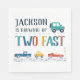Get ready to party with these cute car themed second birthday napkins. Personalized with the birthday boy's name.