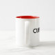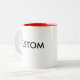 Custom Two-Tone 11oz Ceramic Mug - RED Inside, 4.8” high x 3.2” diameter. 11 oz or 15 oz options. Microwave and dishwasher safe. FDA food and beverage safety approved. Black, lime, maroon, navy blue, orange, pink, red, yellow, hunter green, and light blue color options.