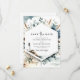 The matter paper is our sample of choice -- it's a reasonably priced, good quality, nice feeling paper stock. We were a little concerned the muted rustic blues might not reproduce all that well (usually by light colored samples), but they're just gorgeous! The white lettering is perfect in combination with the blue background, and the typography is all easy to read.