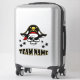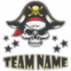 Highlight your favorite team name with this custom sports themed sticker designed with a pirate skull decal allowing you the ability to customize your favorite team or personal name. This team name sticker can be personalized with any fan or sports team name. This cool sports themed sticker makes a great gift for fans, players, and team supporters alike.
