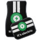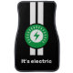 Custom universal car floor mats for electric car owner. Striped design with green energy logo. Personalizable text template and background color. Bold big letter typography with sporty stripes. Cool Birthday gift idea for him or her. Create your own universal rubber auto carpets for car enthusiast, auto racing team, taxi driver, mechanic, Tesla owner, son, brother, dad, husband, daughter, mom, wife, sister, friends, family, team mates, business owner, auto dealer, tuner, shop keeper, store boss, employees, co worker etc. Custom printed rugs for your new vehicle. Add your own surname or funny quote.