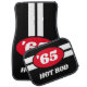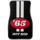Custom universal classic hot rod car floor mat set. Racing stripes design with oval number logo. Personalizable text template and background colors. Add your own make year or racing number. Big bold letter typography with striped lines. Cool Birthday gift idea for him or her. Create your own vintage rubber auto carpets for classic car owner, builder, tuner, collector, muscle car owner, son, brother, dad, husband, daughter, mom, wife, sister, friends, grandpa, grandma, family, team, auto dealer, tuner, shop keeper, garage mechanic, store boss, employees, co worker etc. Custom printed rugs for your old vehicle. Add your own surname or funny quote.
