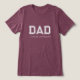 A stylish white T-shirt featuring a playful "DAD" design in pink varsity lettering, with "Custom University" subtly integrated below. Perfect for gifting to moms or adding a fun, personalized touch to your wardrobe. Made from comfortable, high-quality fabric.