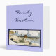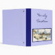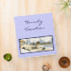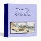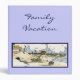 A custom binder with a nostalgic illustration from a storybook of a child laying on the sand at the beach. His dog swims far out in the waves.