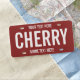 Custom vanity license plate with car nickname. Create unique license plates with cool and funny names. Personalize number plates with color and text. Automotive gift ideas. Also great for auto shows, show room, sales events and more. Font and spacing can be adjusted too. Example cherry for red car.