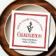 This modern custom veterinary medicine school graduation party paper napkin features the college graduate name in elegant red and black script for the class of 2025. Customize with your university under the veterinarian medical caduceus for great commemorative graduation decor for a DVM.