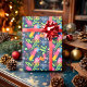 Celebrate the holiday season with this custom Christmas wrapping paper featuring a vibrant design of colorful foliage, neon accents, and festive elements on a dark background. Perfect for adult holiday celebrations, this personalized gift wrap can include names, making each present truly special. The energetic combination of bright pinks, greens, and yellows with delicate snowflakes and festive motifs adds a touch of modern sophistication and excitement to your festivities. Ideal for stylish Christmas gifts, this wrapping paper ensures your presents stand out under the tree. Perfect for memorable gift-giving moments and lively Christmas parties, this wrapping paper spreads holiday cheer and artistic flair to every gift.