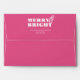 These vibrant pink envelopes feature the word "Merry & Bright" in white over a vibrant fuchsia pink background. The envelope opens to reveal a unique watercolor Christmas pattern. Use the template fields to add your custom return address. A unique choice for the holidays. To see the matching suite visit www.zazzle.com/dotellabelle