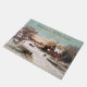 Customize this beautiful Christmas doormat with your own message. Featuring an old fashioned painting of town's people headed to church on a winter morning or eve. Walking or horse drawn sleigh is the tradition in this snowy, vintage scene with the sunrise and lights in the village church windows. This scenic winter country scene is perfect for a calm and sedate, religious winter or Christmas season décor.