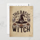 Introducing the perfect blend of humor and charm with our "The Basic Witch" Halloween postcard! This delightful card features a whimsical illustration of a classic black witch hat adorned with a silver buckle, surrounded by playful jack-o'-lanterns, vintage pumpkins, eerie skulls, and cobwebs. The intricate design captures the essence of vintage Halloween vibes, evoking the nostalgia of cauldron spells, spooky full moons, and black cats.