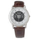 Custom vinyl phonograph record design men's watch with leather band in brown or black. Customizable colors. Personalize the gramophone with name, monogram, date, funny quote etc. Cool design for music lover, deejay, dad, husband, brother etc. Unique novelty gift idea for Birthday or Christmas holidays.
