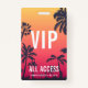 Perfect for summer concerts, festivals and large events, this customizable badge features a background of palm tree silhouettes against a red and yellow summer sunset, with white text overlays. Customize for VIPs, staff, press or other uses, with three lines of text on the front. Add additional event information to the back of the badge in white lettering on black.