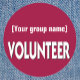 Volunteers for your event or organization can wear these for identification purposes. The word volunteer is large in white stylized letters with a black shadow to make it stand out. Just change to your custom text or group name. Change the background color if you like (edit/background).