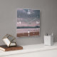 Custom clock with a beautiful image of sea shore in the background in Muted colors. Sunset image of a beach.