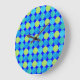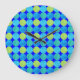 Custom Wall Clock: Blue Moons on Grid Pattern Large Clock