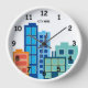 Custom wall clock with city skyline drawing. Personalize with your own name or quote.