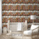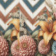 The wallpaper design features a stylish Chevron pattern as the backdrop, creating a dynamic and modern feel. Overlaid on this pattern are beautifully detailed flowers, including vibrant zinnias, lush roses, and delicate vanilla blossoms. The zinnias add bursts of color with their bold, layered petals, while the roses bring a touch of classic elegance with their full blooms. The vanilla flowers introduce a subtle, creamy charm, complementing the more vibrant tones. The combination of the Chevron pattern with these attractive flowers creates a striking balance of contemporary style and natural beauty, making the wallpaper both eye-catching and sophisticated.
