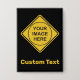 Diamond shaped yellow warning sign. Custom image. Custom background color. Custom text.