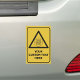Triangle shaped yellow warning sign. Custom image. Custom text.