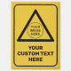 Triangle shaped yellow warning sign. Custom image. Custom background color. Custom text.