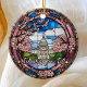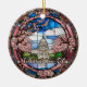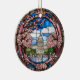 Cute faux stained glass Washington DC pink spring cherry blossom scene, personalizable Date travel souvenir. Great for Christmas and family vacation keepsake, or honeymoon gift.