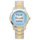 To customize this product, upload your own background image or photo as shown above. To resize or adjust its position, click the Customize It! button below the product image. The positions of the numbers on the clock face can also be tweaked to your liking by resizing the transparent clockface image. You can also add your own text and/or other images if you wish to further personalize this design.