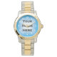 To customize this product, upload your own background image or photo as shown above. To resize or adjust its position, click the Customize It! button below the product image. The positions of the numbers on the clock face can also be tweaked to your liking by resizing the transparent clockface image. You can also add your own text and/or other images if you wish to further personalize this design.