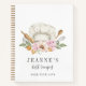 A personalized whimsical watercolor featuring chef's hat and baker's tools floral recipes template with cute watercolor baker's tools rolling pin, piping bag and whisk, and a scrumptious looking cake on the back of the notebook. The pages are ready for your culinary journey with templates that let you list your recipe name, prep time, serving number, ingredients, and instructions. A perfect gift for the avid baker. It is also offered with a hard cover.