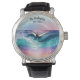 Custom Watercolor Blue Ocean Wave Photo with Name Watch