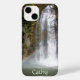 An iPhone 14 Case with a photo of a waterfall with a beautiful arcing rainbow at the bottom. Personalize this by changing the name!