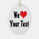 Lightweight, smooth, pure white ornament with nice sheen. Perfect size to be seen from across the room ... and to attract closer inspection! Price was great for ordering enough for the whole family! Clear, bold black design just as requested. Matches the order exactly. Just so nice!