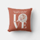 This We Love You Dad Photo Pillow is decorated with the word LOVE in white typography on a rust background.