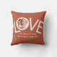 This "We Love You Dad!" Photo Pillow is decorated with the word LOVE in white typography on a rust background.
