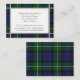 Lovely tartan plaid wedding enclosure card made using the traditional blue and green Forbes plaid. A white text area is surrounded by a pewter like frame. Personalize all the information for your reception and anything else you want on the card.