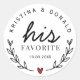 Custom Wedding Favor His Favorite Classic Round Sticker
