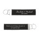This wrist keychain is a personalized and meaningful keepsake for your wedding guests. It features an elegant custom couple's name, wedding date, and a customizable message, such as a thank you note for being part of your special day. More than just a functional accessory, it serves as a symbol of the beautiful memories your guests can take home. With its simple yet heartfelt design, this wrist keychain makes the perfect gift for guests who celebrate your wedding day.