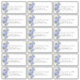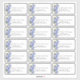 Wedding guest personalized address labels. Design 14" x1 14" sheet holds 18 return address labels. Personalize this template to add each name and address. A fancy script font for the name is above each address. Rolls are numbered from left to right. Zoom in to double-check the address changes and if it all looks good before adding it to the cart. These address labels feature an elegant faux gold glitter geometric frame pattern. Overlaid with watercolor blue roses and greenery foliage. Click to customize further to make more changes. Everything is customizable.