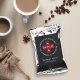 Treat your guests to some recovery essentials with these funny and cute personalized coffee packets. Design features "Hangover Relief Kit -- In Sickness and in Health" in white lettering on an off-black background, curved around a red cross illustration bearing your initials and wedding date. Customize with additional editable text; shown with "Morning After Medium Roast." Shop matching items in our Hangover Relief collection for unique and clever wedding favors!