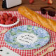 This custom wedding paper plate is shown in a lovely hydrangeas watercolor print.