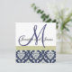 Plain white envelopes are included with paper invitations and will come to fit the invitation size you select. If you don’t need the envelopes, you may choose to not receive them by selecting the dropdown below "Envelopes" and choosing "None." If you’d like to have a design on your envelopes, you can browse all of these available envelopes to find the design that complements your Custom Wedding Invitation Monogram Blue Damask.