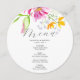 This customized wedding menu card designs features unique watercolor florals in shades of pink and orange. Use the template fields to DIY your personalized details. The elegant round design is a charming choice for rustic and garden weddings. To see more wedding menu card ideas like this visit www.zazzle.com/dotellabelle