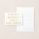 Custom Wedding personalized REAL PRINTED GOLD FOIL ON MINI SIZE 5" x 3.5" (LANDSCAPE) MATTE WHITE GREETING CARD Blank Template. Design, create, make your own. Your images and text on the outside (front and back) of the card printed using metallic foil ink print process, half-tone pattern and your designs on the inside printed in vivid full color CMYK print. Standard white envelope included or upgrade to matching colored-paper envelopes. 3 Card Paper Options: Standard Matte White, Premium Grey, Premium Kraft. 3 Card size options. Metallic Foil Ink options: GOLD or SILVER.