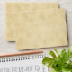 An elegant wedding monogram design in black and white on a vintage style background image design to look similar to old paper or vintage parchment, a background image in yellowy beige and sandy fawn colors with a mottled look to the pattern. This has template spaces for the bride and groom names and a nice swirly script style custom initial letter in white. A nice vintage style themed design with a stylish old fashioned look.