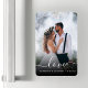 Celebrate your wedding with this keepsake flexible magnet, featuring the word "love" in elegant white handwriting script with swashes at the beginning and end. Personalize it with your names and wedding date, and replace the sample image with your favorite wedding photo. A black gradient filter helps make the text pop.
