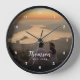 Create a special one of a kind round or square wall clock personalized with your wedding photo, name monogram and established date. The design features simple modern fonts overlaid onto your full bleed photo. Use the design tools to choose any fonts and colors to match your own home decor style. A custom clock is a unique Christmas gift idea for grandparents, new parents or a fun housewarming gift for newlyweds decorating their first home together.