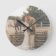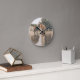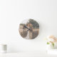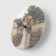 Wedding photo wall clock personalized with the Mr. and Mrs. surname or any custom text. This design has a semi-opaque cover layer to give the canvas a boho style. You can remove it by clicking the button to edit the design.