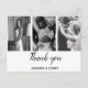 A lovely way to say "Thank you," to all the people, who made your Wedding day special. Customize with 3 of your favourite Wedding photos, placed on a minimalist, White background. With the text "Thank you," in bold Black. Space for you to add your names, and/or Wedding date.