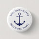 Custom Boat name or Family name, Welcome Aboard, nautical navy blue anchor white pin button