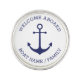Custom Boat name or Family name, Welcome Aboard, nautical navy blue anchor white lapel pin