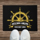 Welcome guests to your dock or home with this charming personalized Black and gold doormat! Featuring a classic nautical ship wheel design, this mat adds a touch of coastal elegance to any entrance. Customize it with your boat's name and established year for a truly unique piece. this doormat is perfect for withstanding the elements. This makes a wonderful gift for boat owners, captains, and anyone who loves the nautical lifestyle.